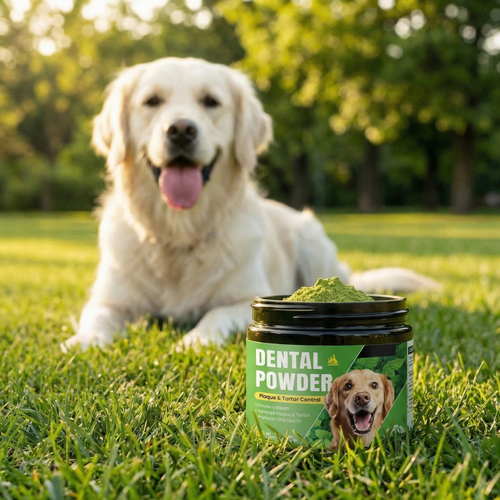 Administering our dental powder is incredibly simple. Just sprinkle the recommended dose onto your dog's regular food. Because it contains no harsh chemicals or artificial flavors, most dogs enjoy the taste or don't even notice it's there, making it the perfect stress-free solution for even the pickiest eaters.